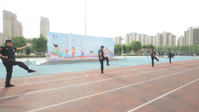 隨後,學校安保人員進行了精彩的軍(jun) 體(ti) 拳展示,一舉(ju) 一動整齊劃一,一招一式張弛有度。剛勁有力的軍(jun) 體(ti) 拳引來了師生陣陣喝彩,充分展示了校園安保人員的良好形象與(yu) 高度的責任心。