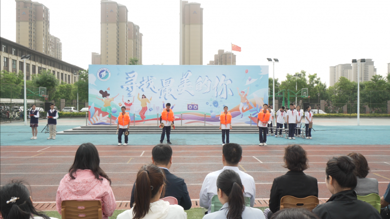 接下來是各班代表隊入場展示。七、八年級代表隊按班級順序依次入場。以防溺水、消防安全、交通安全、防校園欺淩、網絡安全、心理健康等主題,通過情景劇、歌舞、小品、三句半等多種形式,通過大膽的想象、獨具匠心的創意,表演詮釋了安全的重要性。