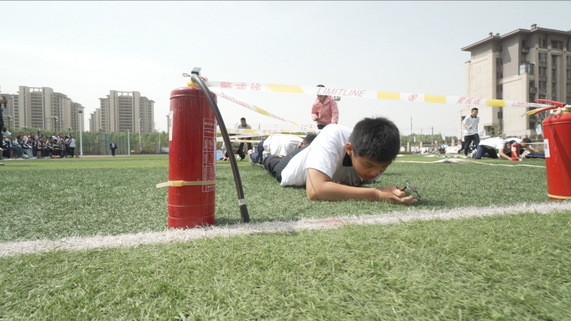 最後的環節是爭(zheng) 霸賽,包括搭橋過河、滅火器滅火、擔架抬傷(shang) 員20米、穿越火線、跳過小墊子障礙物等項目。同學們(men) 在草地上匍匐前進,低姿穿越火線;協同拉展水帶,手持噴頭滅火,仿佛置身於(yu) 真實的火場中……在挑戰的征途上,同學們(men) 並肩作戰,共同麵對每一個(ge) 困難。每一個(ge) 環節都考驗著他們(men) 的智慧和勇氣,每一個(ge) 成功的背後,都凝聚著他們(men) 的汗水和努力。