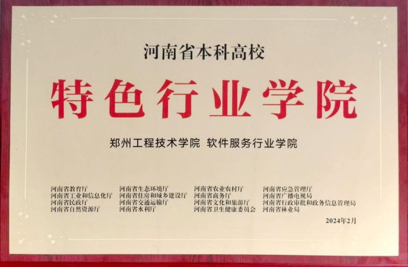 2024年5月18日, 由河南省高等教育學會(hui) 主辦的“河南省高等教育產(chan) 教融合發展大會(hui) ”在鄭州國際會(hui) 展中心舉(ju) 行。會(hui) 議邀請了全國教育界與(yu) 企業(ye) 界的嘉賓,共商共議深化產(chan) 教融合內(nei) 涵發展麵臨(lin) 的機遇、挑戰和發展趨勢,並為(wei) 省級特色行業(ye) 學院授牌。鄭州工程技術學院申報的“軟件服務行業(ye) 學院”獲批河南省第二批省級特色行業(ye) 學院,楊慶年副校長出席會(hui) 議,並接受授牌。