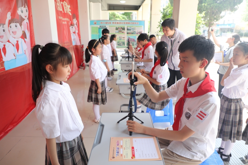 本次闖關(guan) 活動包含線上測試“六知”知識和線下實地考察“六會(hui) ”技能兩(liang) 部分內(nei) 容。“六知”部分涵蓋了少先隊的隊名、創立者和領導者,以及隊旗、隊禮、隊徽和作風的含義(yi) ,要求學生們(men) 準確理解並能流利表達。“六會(hui) ”部分則涉及了係紅領巾、敬隊禮、呼號、唱隊歌、背入隊誓詞和寫(xie) 申請書(shu) 等技能,每一項都需要學生們(men) 親(qin) 自動手實踐。其中,“六知”知識線上無紙筆測試,依托河南省中小學智慧教育平台“隊前教育評價(jia) ”係統,通過趣味闖關(guan) 測評和動態風采展示,家長和老師可以實時查看測評進度及結果,整個(ge) 測評過程充滿了互動性與(yu) 趣味性且數據公開透明。從(cong) 每一名預備隊員快速準確的答題中,能看出隊知識早已熟記於(yu) 心,在星星火炬指引下,紅色種子早已經在他們(men) 的心中生根發芽!