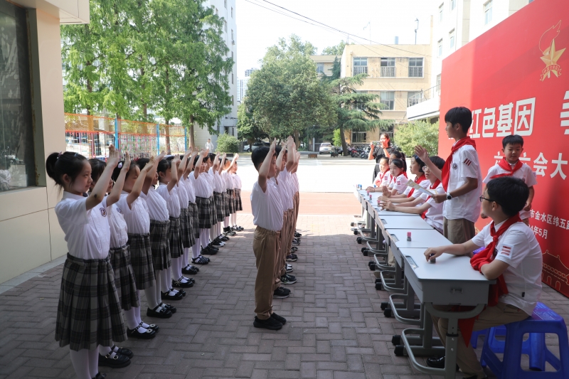 5月22日下午,鄭州市緯五路第一小學開展了一年級首批入隊“六知六會(hui) ”大闖關(guan) 活動,切實增強少先隊員光榮感和組織歸屬感。