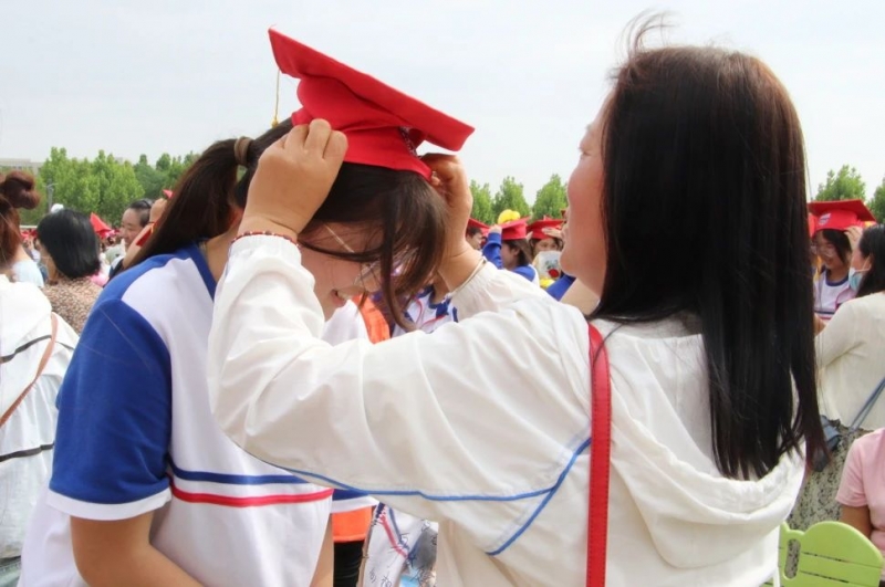 成人禮儀(yi) 式上,家長為(wei) 孩子冠戴“成人帽”,舉(ju) 行撥穗禮。全體(ti) 學生誦讀成人禮誓詞,挽著父母,在老師的陪伴和祝福下,跨越“成人門”,翻開“新篇章”。
