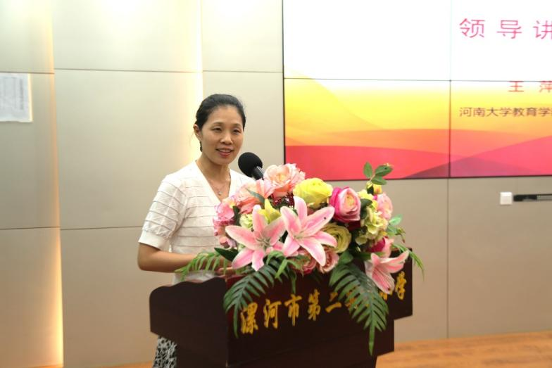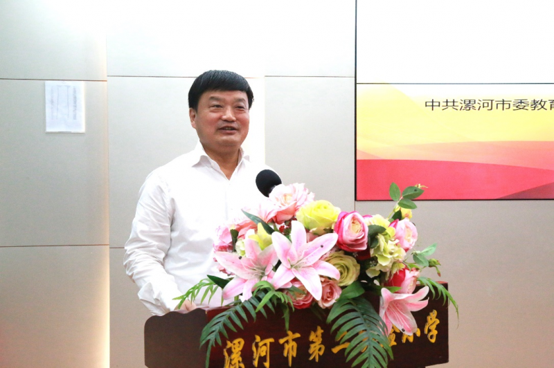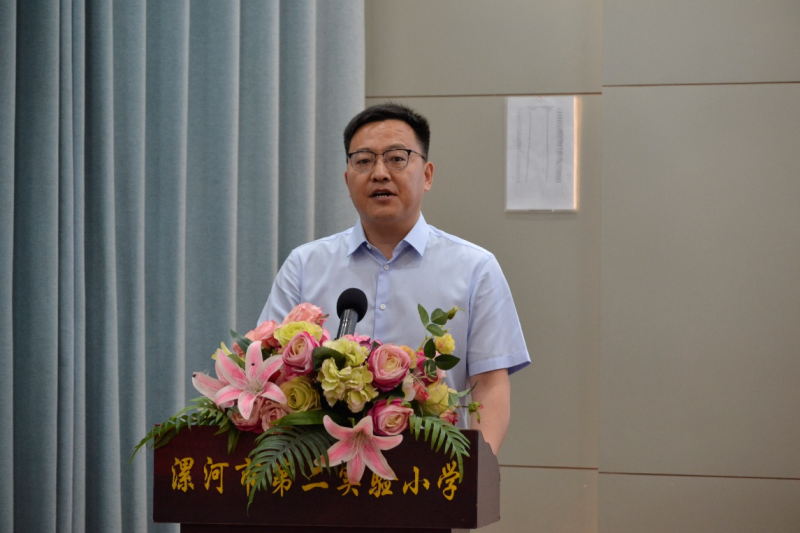漯河市教育局黨(dang) 組書(shu) 記、局長王海東(dong) 在致辭中向參與(yu) 活動的領導和教師表示熱烈歡迎。王海東(dong) 回顧了漯河教育事業(ye) 取得的各項成績,希望漯河各級各類學校校長、教師大力弘揚、切實踐行教育家精神,在紮根一線、強化技能中培育教育家精神,在反思總結、開放兼容中積澱教育家精神,在課程開發、打造人才培養(yang) 新模式中精進教育家精神。