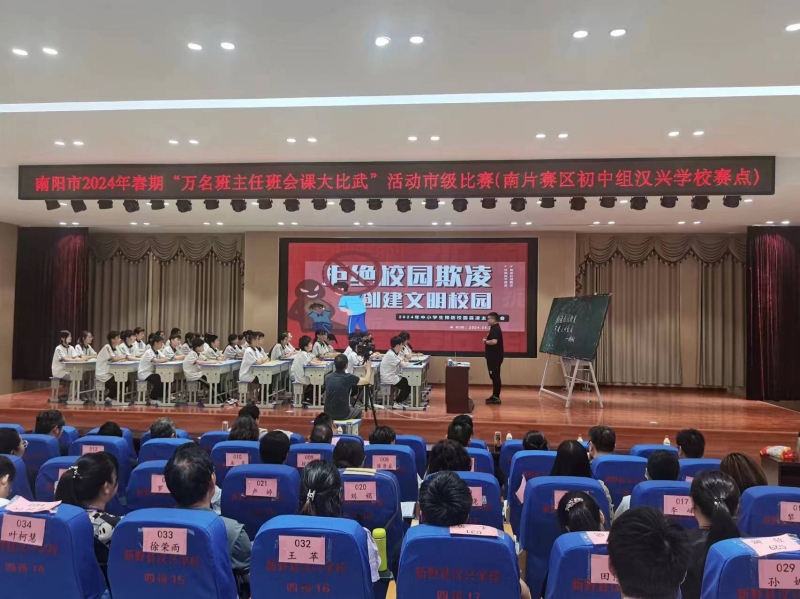 這是南陽市2024年春期“萬(wan) 名班主任班會(hui) 課大比武”活動中片區的兩(liang) 節班會(hui) 課。與(yu) 此同時,新野縣(南片區)、南召縣(北片區)、中職組等區域和組別,河南省經濟管理學校、南陽科技職業(ye) 學院、南陽市宛西中等專(zhuan) 業(ye) 學校、唐河縣中等職業(ye) 學校等賽點的比賽也在火熱進行中。