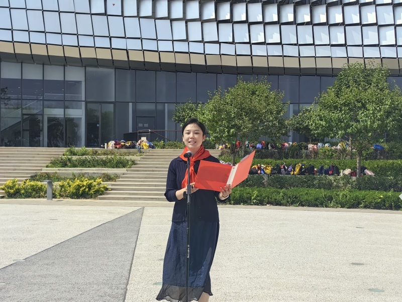 鄭州市經三路小學少工委主任張仁傑向所有新隊員表示熱烈祝賀並提出希望:樂(le) 學、樂(le) 創、樂(le) 群,從(cong) 小像科學家一樣勤奮學習(xi) 、熱愛祖國、建設祖國;像科學家一樣擁有好奇心和探究欲,用書(shu) 本上的知識解決(jue) 生活中的實際問題,在實踐中體(ti) 驗科學家的精神品質;像科學家一樣擁有團隊協作精神,熱愛集體(ti) 互學互助,用實際行動為(wei) 隊旗增輝、為(wei) 紅領巾添彩!