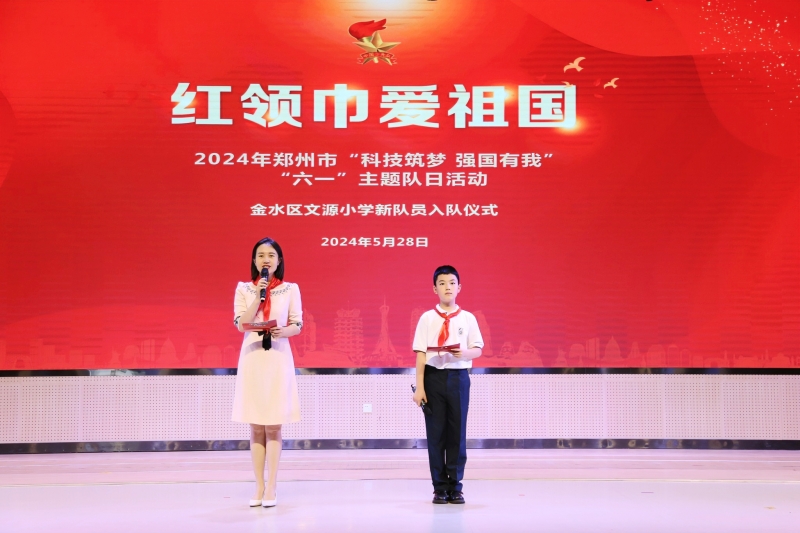 5月28日,共青團鄭州市委、鄭州市教育局、鄭州市少工委在金水區文源小學開展以“紅領巾愛祖國”為(wei) 主題的“六一”主題隊日活動。