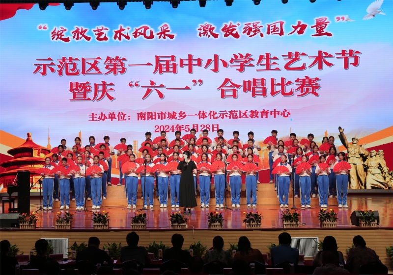 5月28日,南陽市城鄉(xiang) 一體(ti) 化示範區教育中心成功舉(ju) 辦第一屆中小學生藝術節暨慶“六一”合唱比賽。南陽市教育局有關(guan) 領導,區黨(dang) 工委委員、月季博覽中心主任法聚明,教育中心機關(guan) 全體(ti) 同誌,各中心學校、完全學校、中小學校校長及體(ti) 衛藝專(zhuan) 幹參加活動。