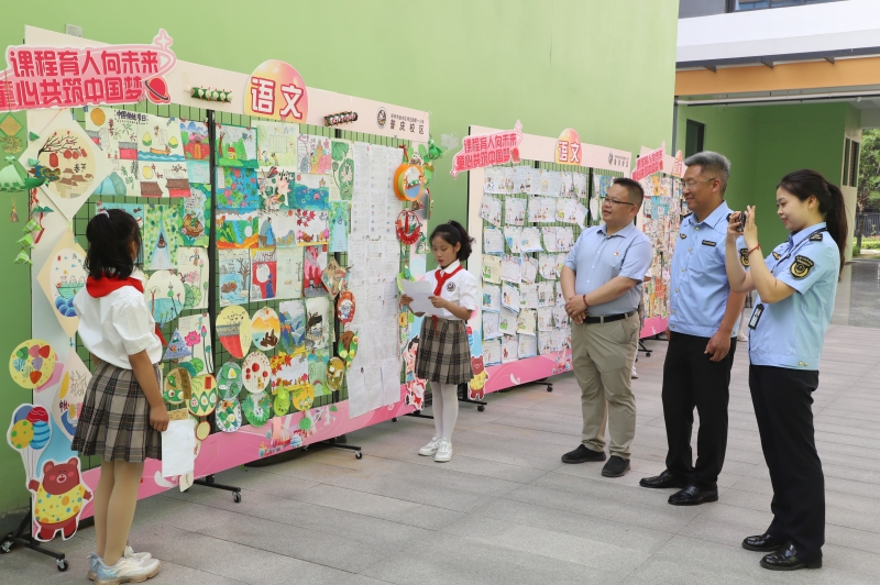“叔叔好,歡迎來到緯五一普慶校區,這是我們(men) 語文學科的作業(ye) 展架。這一部分作業(ye) 展示的是傳(chuan) 統文化……”各科作業(ye) 展架前,小講解員正在為(wei) 各位嘉賓介紹學科特色作業(ye) 。