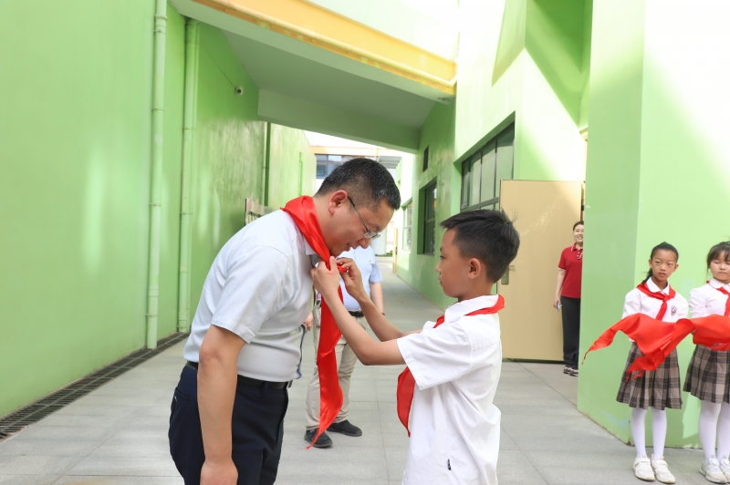 剪紙社團和紙漿畫社團的專(zhuan) 屬展台上擺滿了社團學生的作品,經過孩子們(men) 一雙雙巧手的加工,大紅的紙張化身為(wei) 突出二十四節氣的剪紙,各色的紙張成為(wei) 了豐(feng) 富多彩的中草藥形象。光與(yu) 影的疊加,明與(yu) 暗的交錯,是紙的密碼,更像是生活的顏色。在學校報告廳門口,伴隨著《紅領巾飄起來》的悠揚歌聲,少先隊員為(wei) 來賓敬獻了鮮豔的紅領巾。