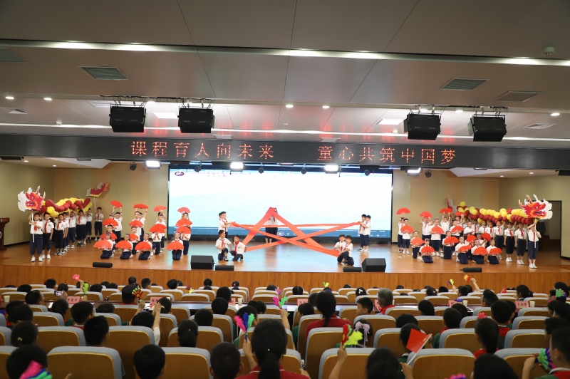 兩(liang) 條栩栩如生的龍在孩子們(men) 的共同努力下舞了起來,功夫扇在孩子們(men) 手中呼呼生風,中國紅的綢子組成了五角星的形狀,傳(chuan) 統文化與(yu) 紅色文化在《龍騰盛世》節目中完美融合,為(wei) 綜合素質展演拉開了序幕。曆史童謠《盧溝謠》,用簡單深刻、清新質樸的語言,再現了盧溝橋地區發展變遷的千年曆史畫卷,聚焦永定河、盧溝橋、宛平城這些特殊的深深打著中華民族烙印的材體(ti) ,折射出偉(wei) 大的愛國主義(yi) 精神。《崖上的波妞》以兒(er) 童的視角敘事,類似兒(er) 童繪本的線條,色調明麗(li) ,營造出一種充滿奇幻感的童話世界氛圍。火熱的籃球與(yu) 舞動的啦啦操,在明快的節奏中共同展現了運動的風采與(yu) 活力;古箏揚琴合奏奏《漁舟唱晚》,音樂(le) 如行雲(yun) 流水般流淌而出;武術《龍騰虎躍》個(ge) 個(ge) 英姿颯爽,詮釋了力量與(yu) 美的完美結合;《歡慶六一》的舞蹈,小小向日葵向陽而生、逐光而行;《春詩誦讀》把春天的美好留在心中,分享給每一位同學和通過視頻號直播觀看的家長;街舞《燃動少年》自由灑脫,充滿了活力和創意;教師節目《“育”見未來》再現了“捧著一顆心來”的求真教育夢想;舞蹈《化繭成蝶》不僅(jin) 展現了蝴蝶的美麗(li) 與(yu) 力量,更傳(chuan) 達了孩子們(men) 勇敢追求夢想。最後,師生同唱《國旗國旗真美麗(li) 》,用歌聲禮讚偉(wei) 大的祖國。