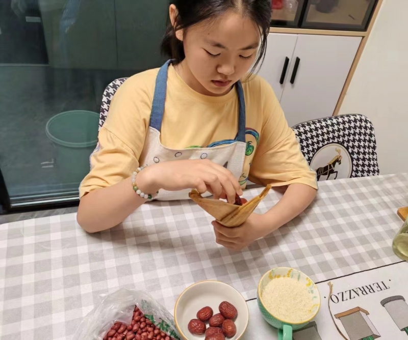 “仲夏端午,烹鶩角黍。”包粽子、吃粽子是我國端午節的傳(chuan) 統習(xi) 俗。少先隊員們(men) 在家向長輩學習(xi) 包粽子,卷葉、放餡料、裹米、包紮……看似簡單的幾個(ge) 動作,幹起來可沒那麽(me) 輕鬆。盡管如此,孩子們(men) 的積極性都很高,個(ge) 個(ge) 忙得不亦樂(le) 乎,任何一個(ge) 工序也不馬虎。