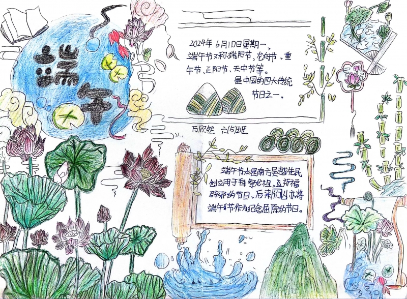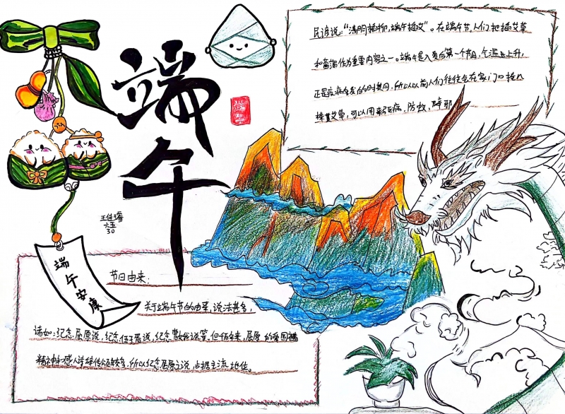 賽龍舟是端午節的習(xi) 俗之一。孩子們(men) 以獨特的視角和豐(feng) 富的想象力,將自己對端午節的理解融入繪畫中,創作出一幅幅創意無限的作品,體(ti) 現了對端午文化的熱愛以及理解。