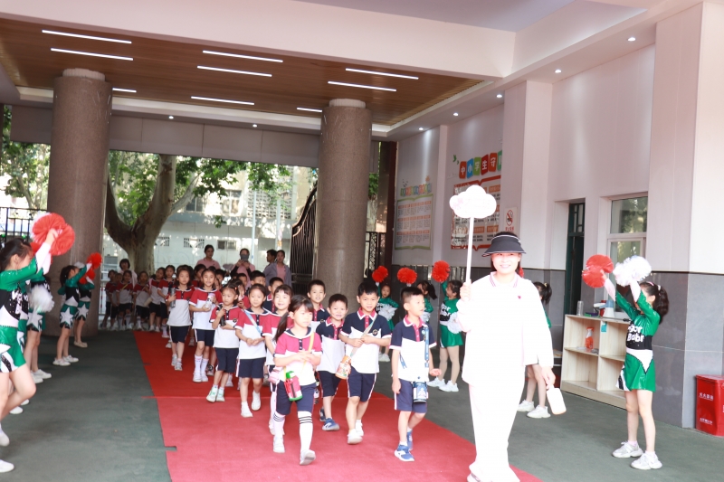 一路上,孩子們(men) 興(xing) 奮不已,懷著強烈的好奇心來到了鄭州市文化路第二小學。一首歡快的《向快樂(le) 出發》迎接幼兒(er) 們(men) 的到來,孩子們(men) 走過紅毯,陽光活力的啦啦操隊員們(men) 在兩(liang) 側(ce) 用歡快的舞蹈向孩子們(men) 熱情的招手歡迎!學校黨(dang) 總支書(shu) 記弓書(shu) 玉、校長丁戈軍(jun) 及全體(ti) 班子成員在門口迎接,學校少先隊大隊幹部熱情接待,儀(yi) 式感滿滿!