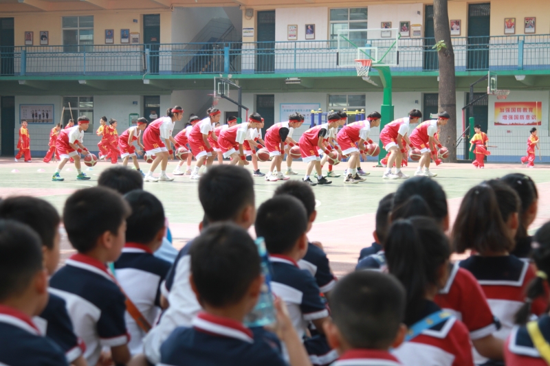 在體(ti) 驗小學教室的環節,幼兒(er) 園的孩子們(men) 和小哥哥、小姐姐們(men) 坐在一起,觀摩小學課堂,感受到了積極向上的學習(xi) 氛圍。從(cong) 教室裏走出來,孩子們(men) 又被體(ti) 育社團籃球、武術的訓練所吸引。