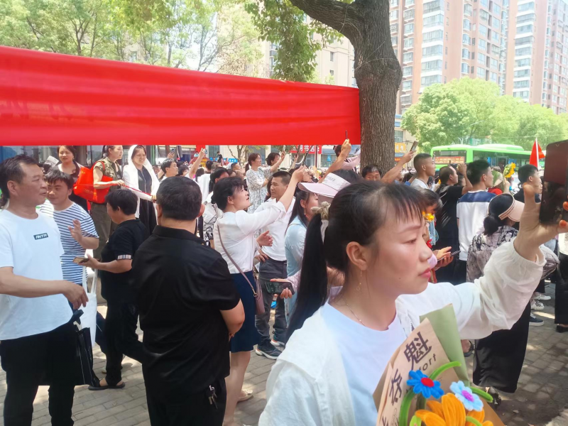 家長給孩子送上寓意“一舉(ju) 奪魁”的鮮花