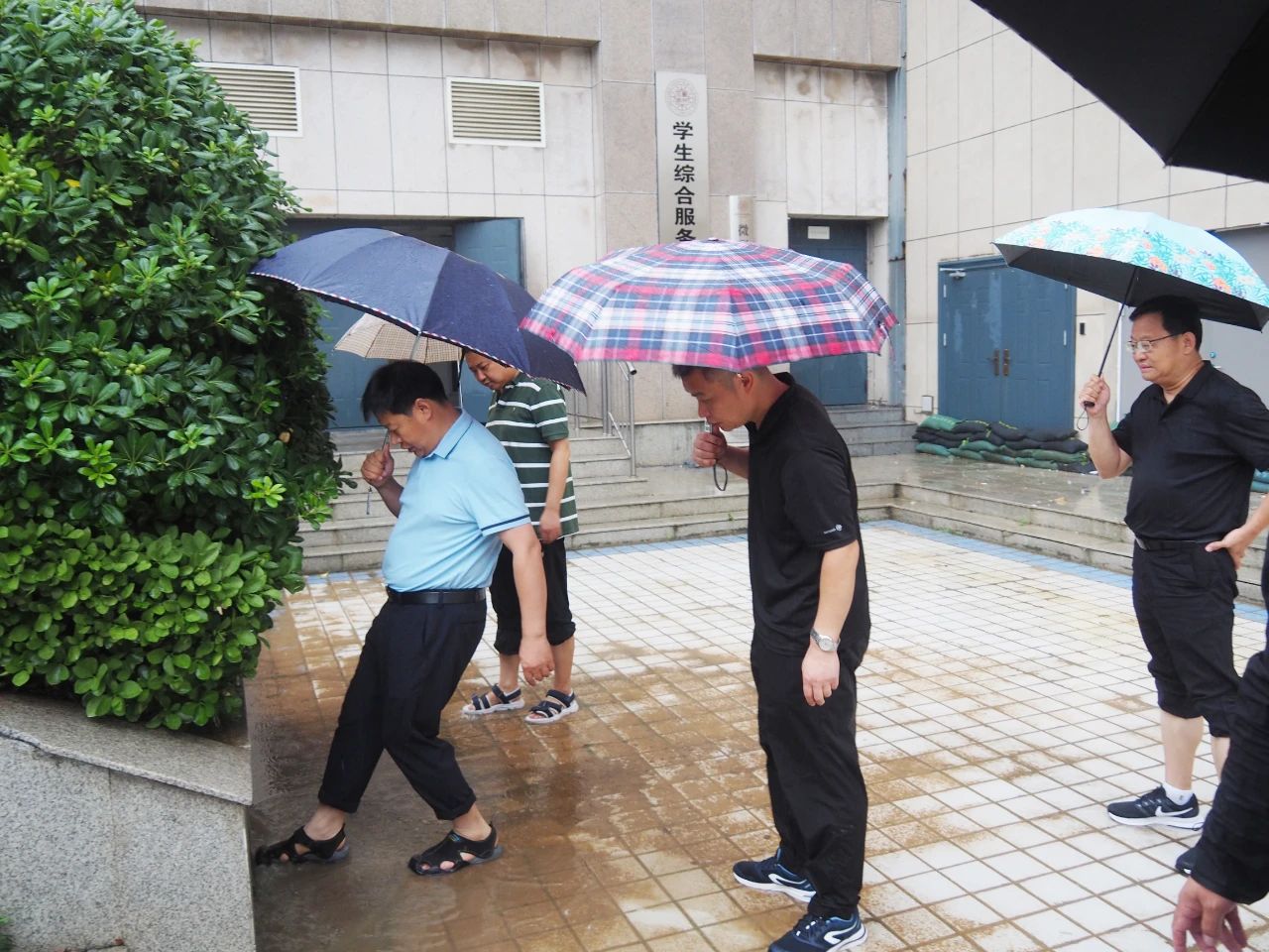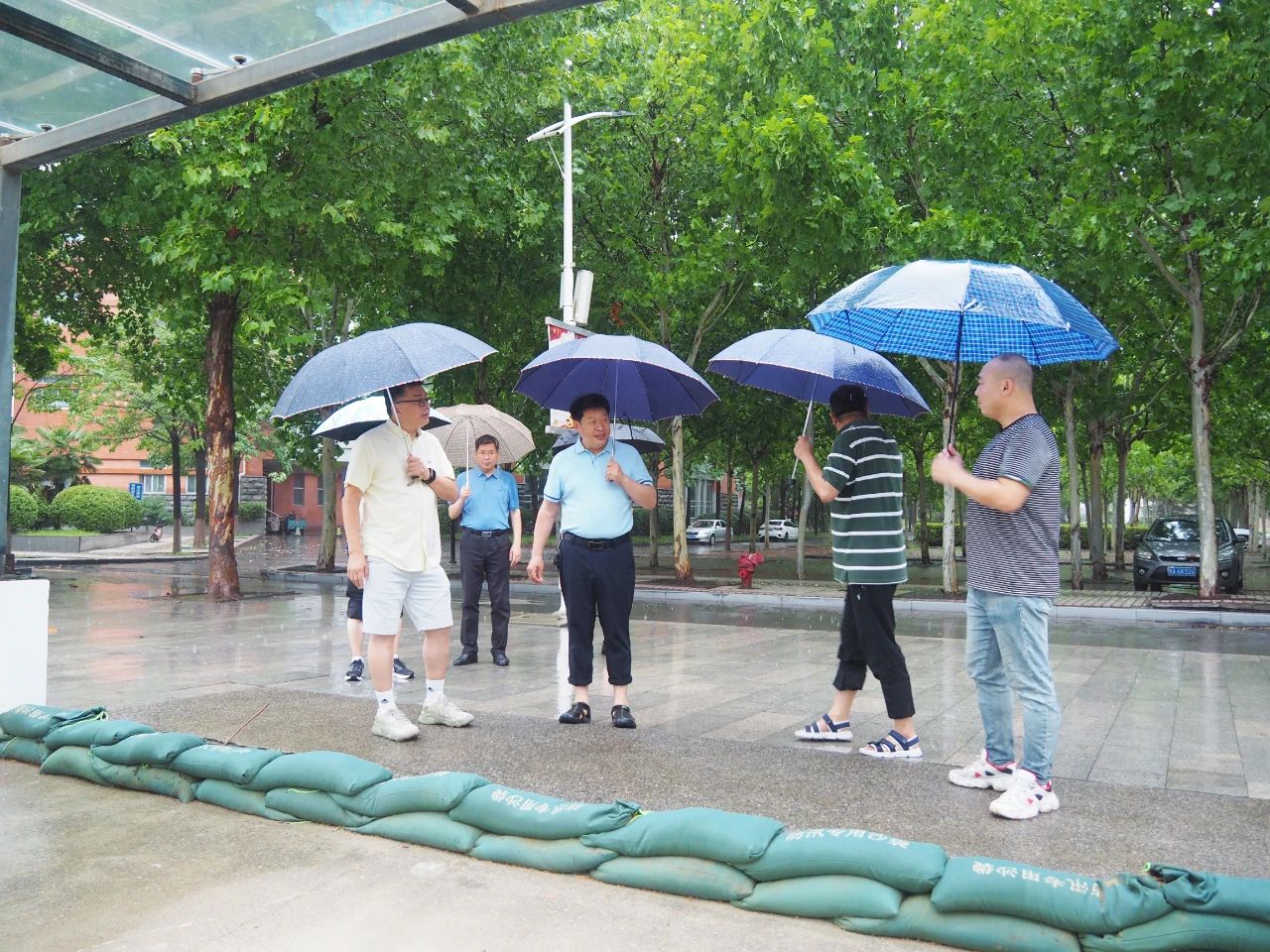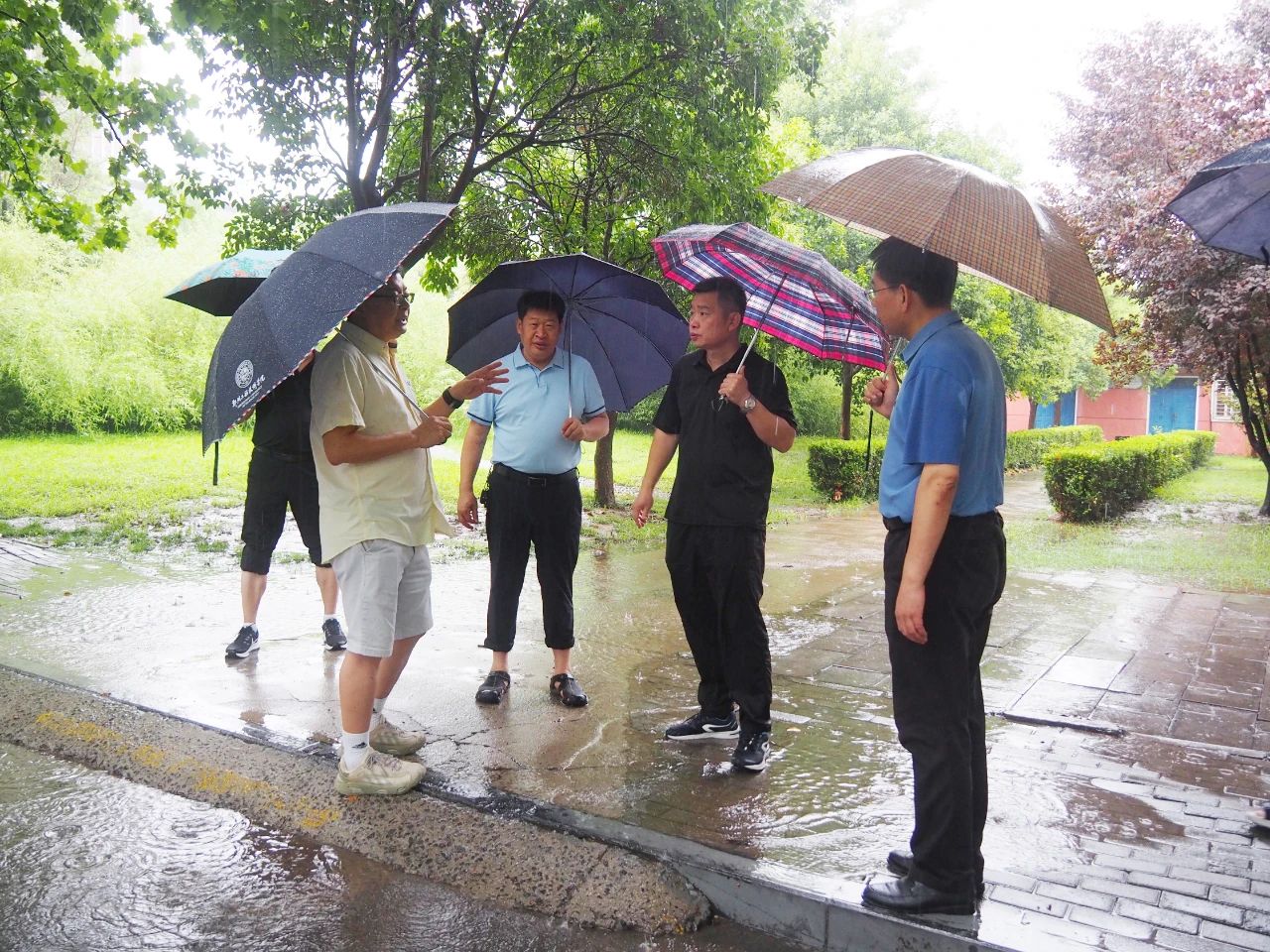 7月8日早上,校長白仲虎、副校長楊慶年一行冒雨深入英才金河兩(liang) 校區檢查督導防汛工作,就做好學校強降雨過程防範應對工作進行安排部署。