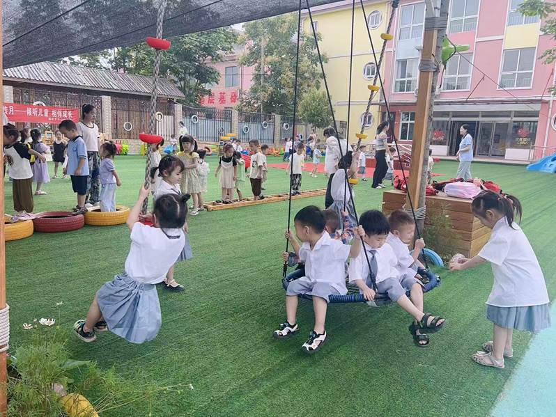 步入襄城縣幼兒(er) 園教育集團建設路分園,目之所見是雙向通行的微型馬路、簡易的交通標誌和公交站牌。模擬交通道路安全的場景生動有趣,貼近生活,成為(wei) 孩子們(men) 最喜歡玩耍的區域。在潛移默化中,交通安全知識紮根於(yu) 一個(ge) 個(ge) 幼小的心靈。幼兒(er) 園裏,處處細節可以感受到校園建設者所投入的“小心思”:定製的加長滑梯,讓孩子們(men) 可以流暢地滑入沙池;藍白相間的翻滾珠,在指尖翻滾的愉悅中,刺激孩子們(men) 的手指發育;榫卯結構、無一顆釘子螺絲(si) 的桌椅,坐上去舒適又安全;150平米左右的校舍內(nei) ,以原木色為(wei) 主色調,各種教具、裝飾,將活動室裝扮得十分溫馨。