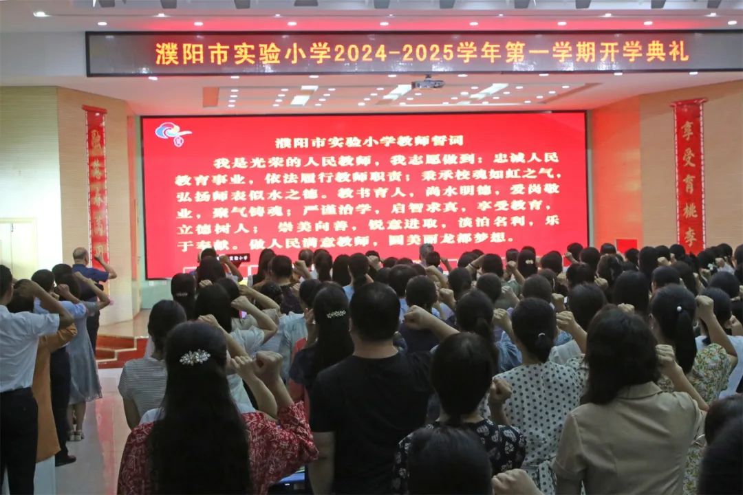 8月30日,濮陽市實驗小學舉(ju) 行2024—2025學年第一學期教職工開學典禮,按下秋季新學期的啟動鍵,奏響新學年的新樂(le) 章。濮陽市華龍區教育局黨(dang) 組書(shu) 記、局長李本剛,華龍區基礎教育教學研究中心主任王煥銀出席典禮。