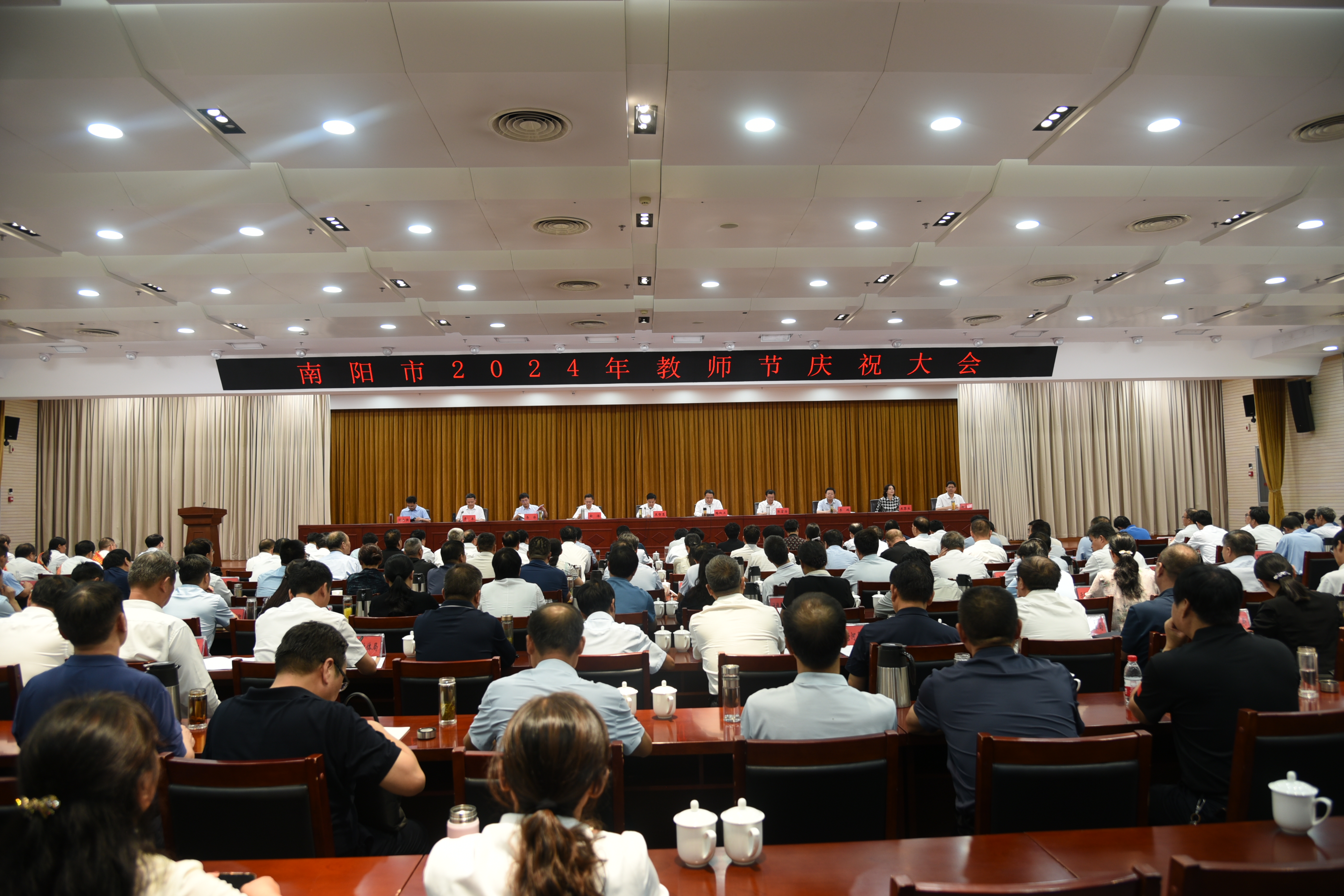 在全國第40個(ge) 教師節來臨(lin) 之際,9月5日,南陽市召開2024年教師節慶祝大會(hui) 。南陽市委書(shu) 記王智慧在會(hui) 議上強調,要樹牢“抓教育就是抓發展、謀教育就是謀未來”的理念,持續發力抓教育、不遺餘(yu) 力辦教育、齊心協力興(xing) 教育,傾(qing) 心傾(qing) 力傾(qing) 情辦好人民滿意的教育,為(wei) 建設現代化省域副中心城市夯實教育基石。會(hui) 議由南陽市人民政府市長路紅衛主持。