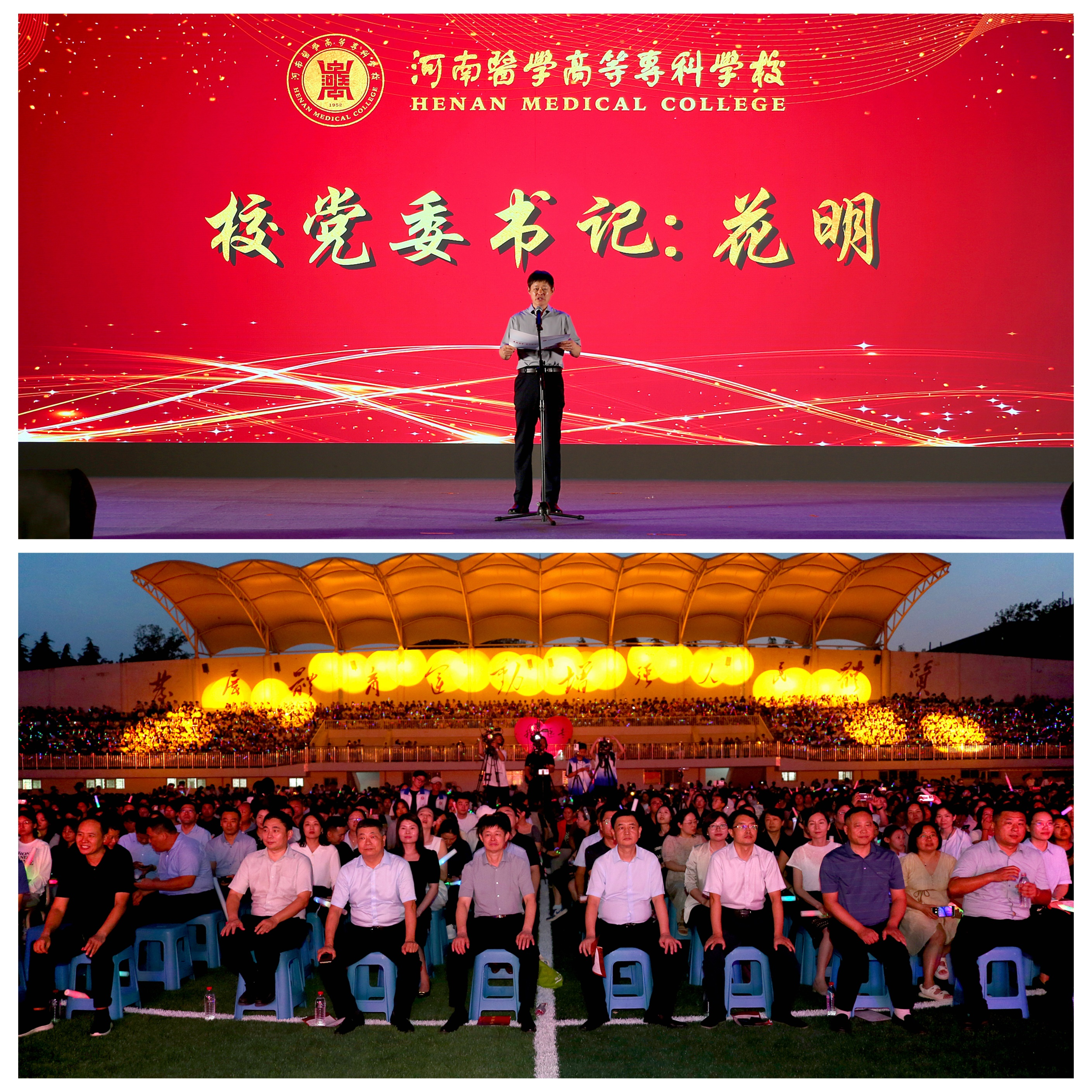 9月9日晚,河南醫學高等專(zhuan) 科學校熱烈慶祝第40個(ge) 教師節暨2024級迎新晚會(hui) 在田徑場隆重舉(ju) 行。在鄭校領導花明、孫韜、李鵬濤、張進忠、李建豐(feng) 、霍振昂出席活動,全體(ti) 教職工和2023級、2024級全體(ti) 學生8000餘(yu) 人觀看了晚會(hui) 。