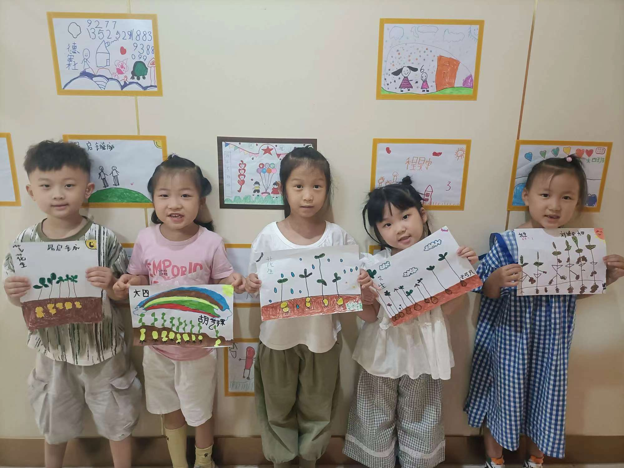 有了收獲花生的體(ti) 驗,孩子們(men) 在品嚐中與(yu) 小夥(huo) 伴一起交流,並自發用繪畫的方式記錄下花生的生長、花生外形等。
