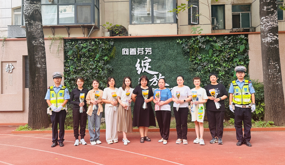正值第四十個(ge) 教師節,活動最後,交警十三支隊的交警同誌還向辛勤工作的老師們(men) 贈送了鮮花,表達了節日的祝福。