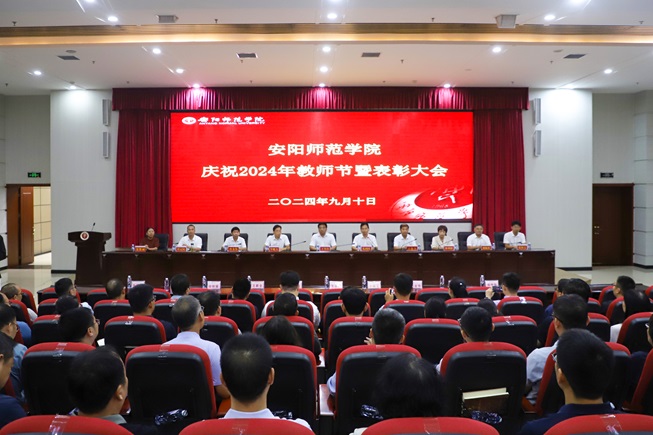 9月10日上午,安陽師範學院慶祝第40個(ge) 教師節暨表彰大會(hui) 舉(ju) 行。校黨(dang) 委書(shu) 記王全良、校長孔國慶等全體(ti) 校領導與(yu) 獲獎集體(ti) 和個(ge) 人、全體(ti) 中層幹部、教師代表、離退休老同誌代表、學生代表等歡聚一堂,共同慶祝第40個(ge) 教師節。孔國慶主持會(hui) 議。