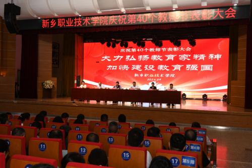 為(wei) 大力弘揚教育家精神,加快建設教育強國,9月10日,新鄉(xiang) 職業(ye) 技術學院舉(ju) 行慶祝第40個(ge) 教師節大會(hui) ,表彰一年來湧現出的先進集體(ti) 、先進個(ge) 人,校長夏錦紅,副校長閆金友、崔風華、原淑慧,紀委書(shu) 記李學良出席,近千名教師參加此次活動,大會(hui) 由黨(dang) 委副書(shu) 記、工會(hui) 主席李紅軍(jun) 主持。