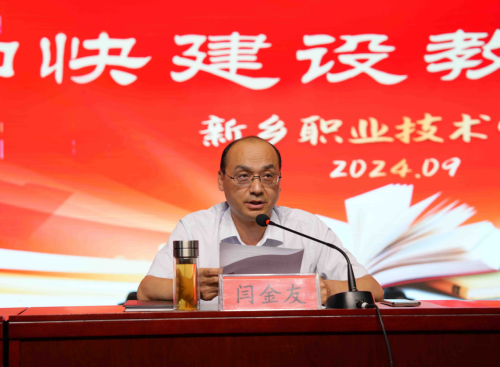 閆金友同誌宣讀《新鄉(xiang) 職業(ye) 技術學院關(guan) 於(yu) 表揚2023—2024學年度先進集體(ti) 和先進個(ge) 人的決(jue) 定》。