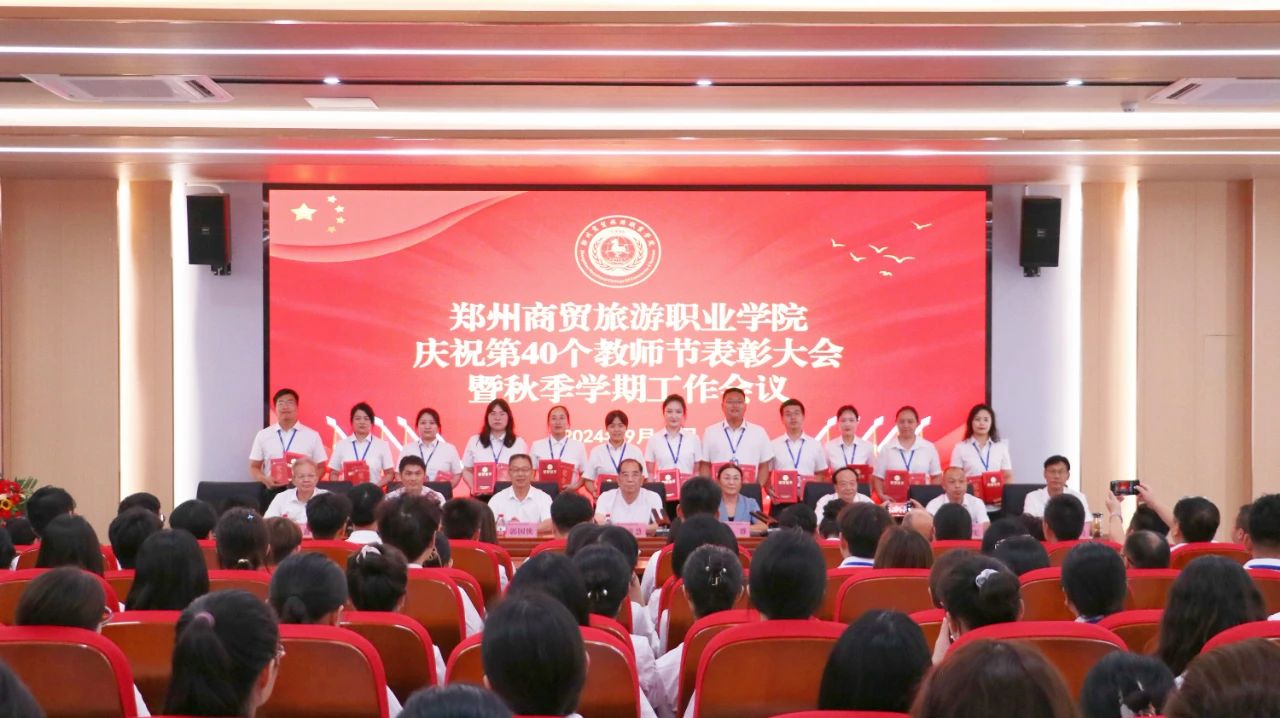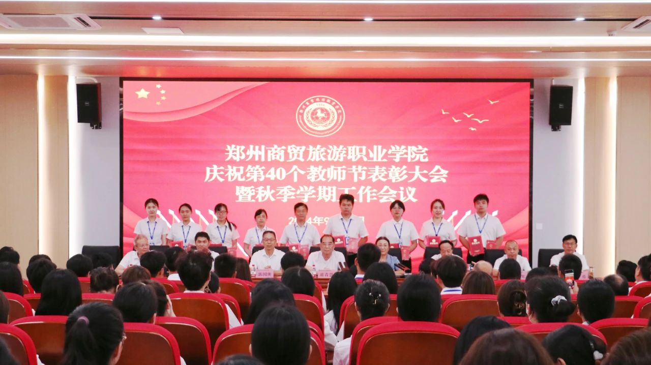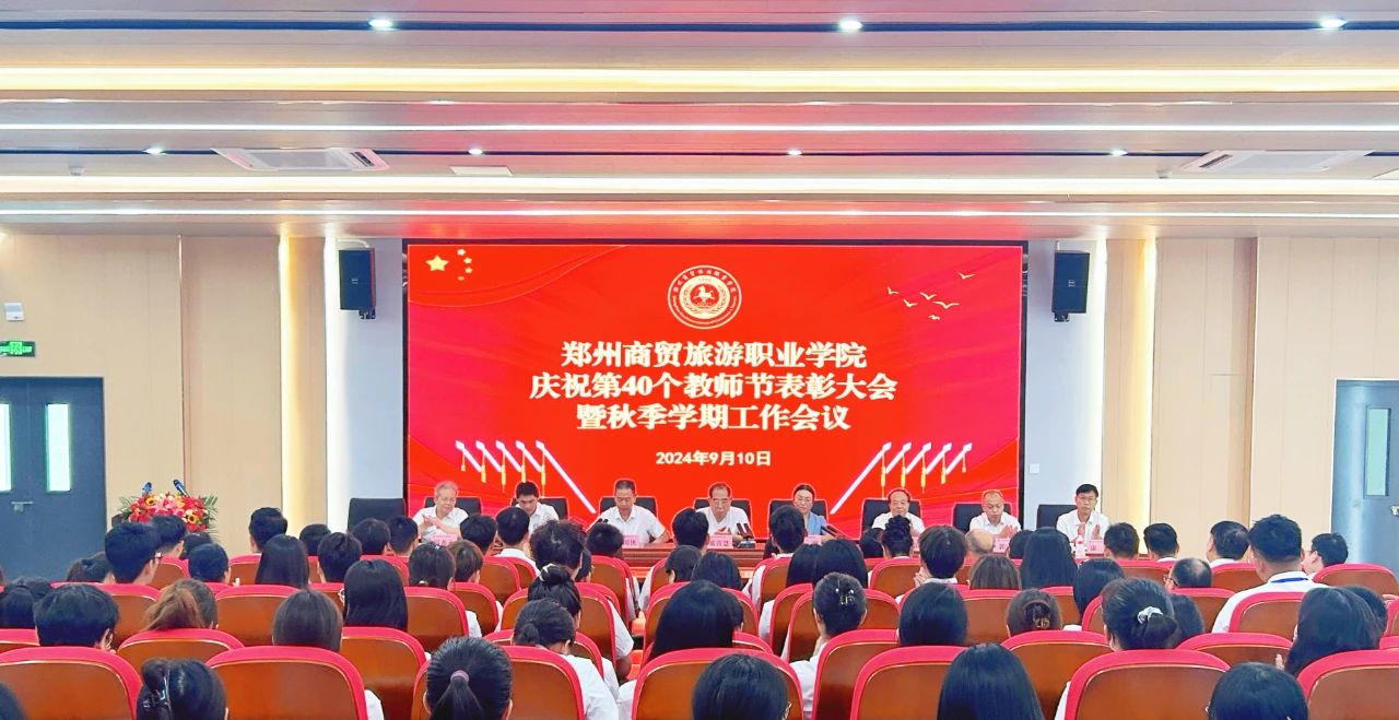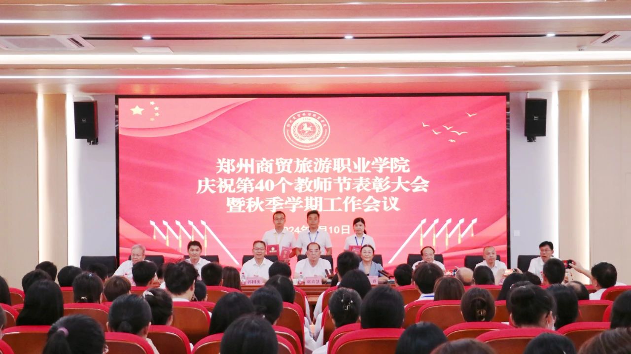 9月10日下午,鄭州商貿旅遊職業(ye) 學院在新密校區舉(ju) 行“慶祝第40個(ge) 教師節表彰大會(hui) 暨秋季學期工作會(hui) 議”。董事長席青慧,校黨(dang) 委書(shu) 記張睿、校長郭國俠(xia) 等黨(dang) 政領導出席會(hui) 議,各處室、二級學院負責人、全體(ti) 教職工和學生代表參加。會(hui) 議由黨(dang) 委副書(shu) 記焦永剛主持。