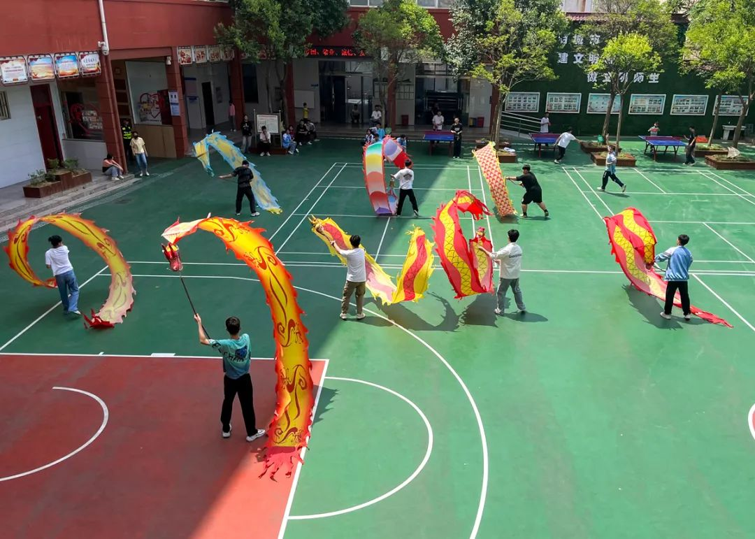 學嗩呐的學生已經可以演奏《金蛇狂舞》《喜洋洋》《不老的爸爸》等樂(le) 曲,並且在2023年12月參加了漯河市文化館“藝夢·幸福人生”公益培訓成果匯報展演;學習(xi) 剪紙的學生們(men) 已經能夠獨立完成精美的剪紙作品,他們(men) 製作的46幅剪紙作品參加了漯河市文化館舉(ju) 辦的2024年慶元旦剪紙作品展;學校的教室裏擺滿了學生手工製作的各種泥塑和麵塑,各種色彩鮮豔造型各異的作品憨態可掬活靈活現;每天上午的陽光大課間,全體(ti) 學生共舞健身龍,操場上一百多條彩龍上下翻飛,一派熱鬧歡騰的景象。舞龍項目參加了2024年全國“奔跑吧,少年”兒(er) 童青少年主題健身活動(漯河會(hui) 場)啟動儀(yi) 式節目展演。