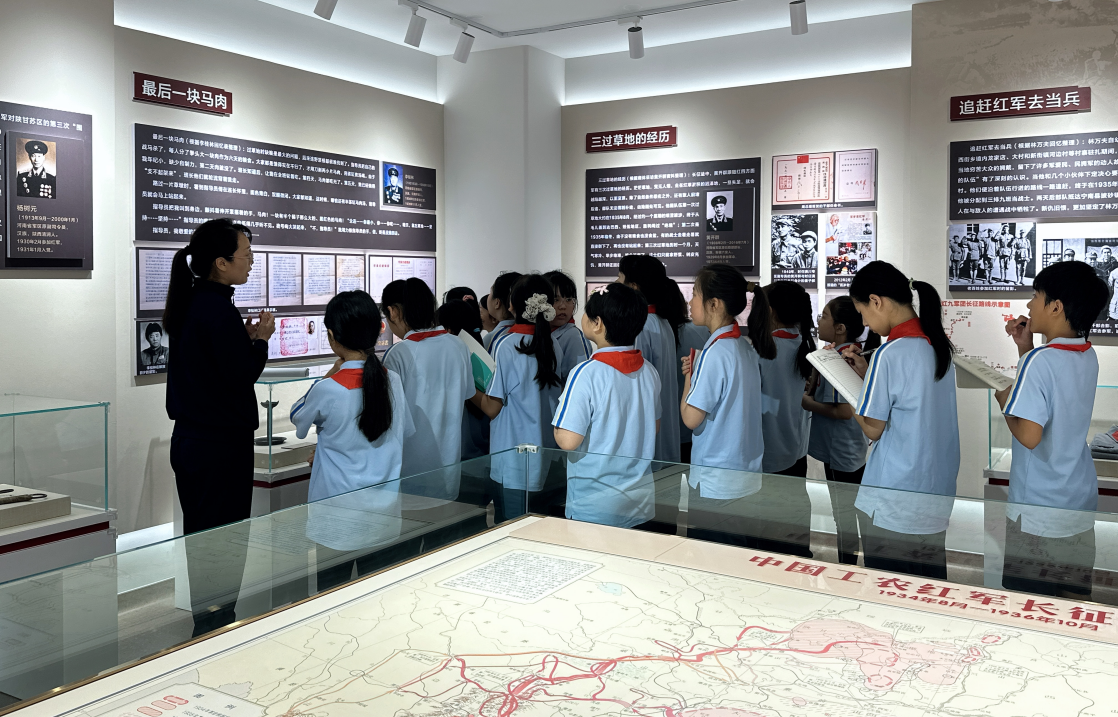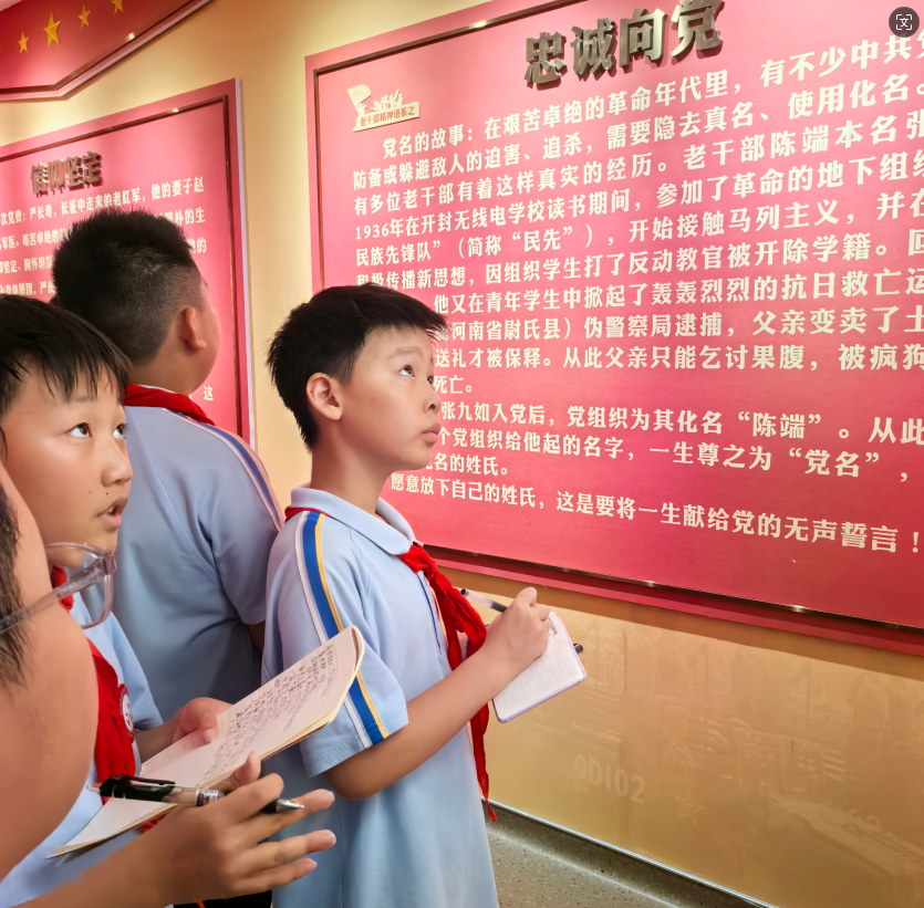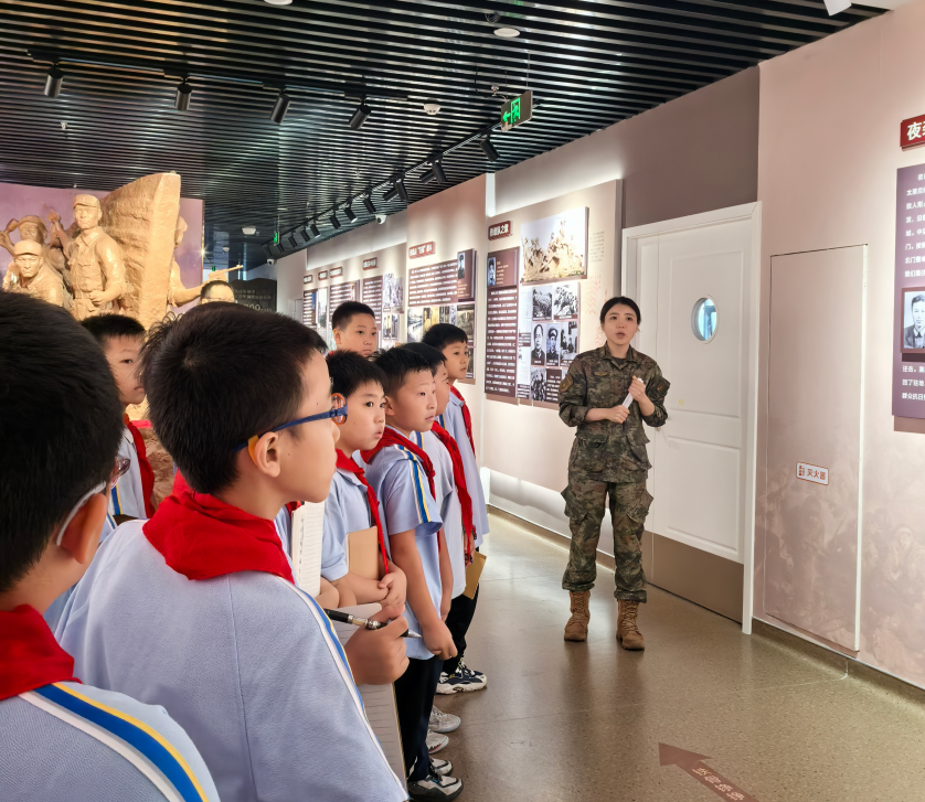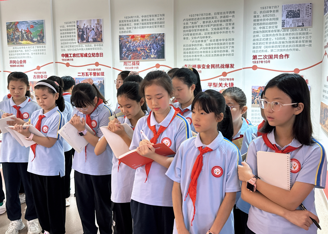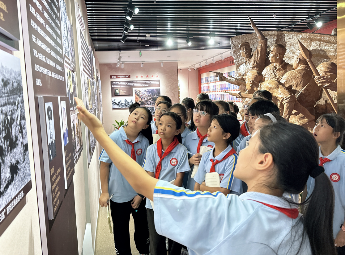 學生們(men) 滿懷著敬意,依次參觀各個(ge) 展廳,親(qin) 身感受革命先烈的英勇事跡。無論是土地革命時期艱苦卓絕、英勇頑強的鬥爭(zheng) 經曆,還是解放時期,他們(men) 為(wei) 了新中國,為(wei) 了人民翻身獲得解放,前赴後繼,一往無前,再或是抗美援朝時他們(men) 高舉(ju) 保衛和平、反抗侵略的正義(yi) 旗幟,雄赳赳、氣昂昂跨過鴨綠江……從(cong) 一件件珍貴的文物、一幅幅生動的照片、一段段感人的文字中再次回顧革命英雄浴血奮戰的崢嶸歲月,深切感受他們(men) 不懼犧牲、為(wei) 國奉獻的大無畏精神。孩子們(men) 認真聆聽講述,細心記錄故事。