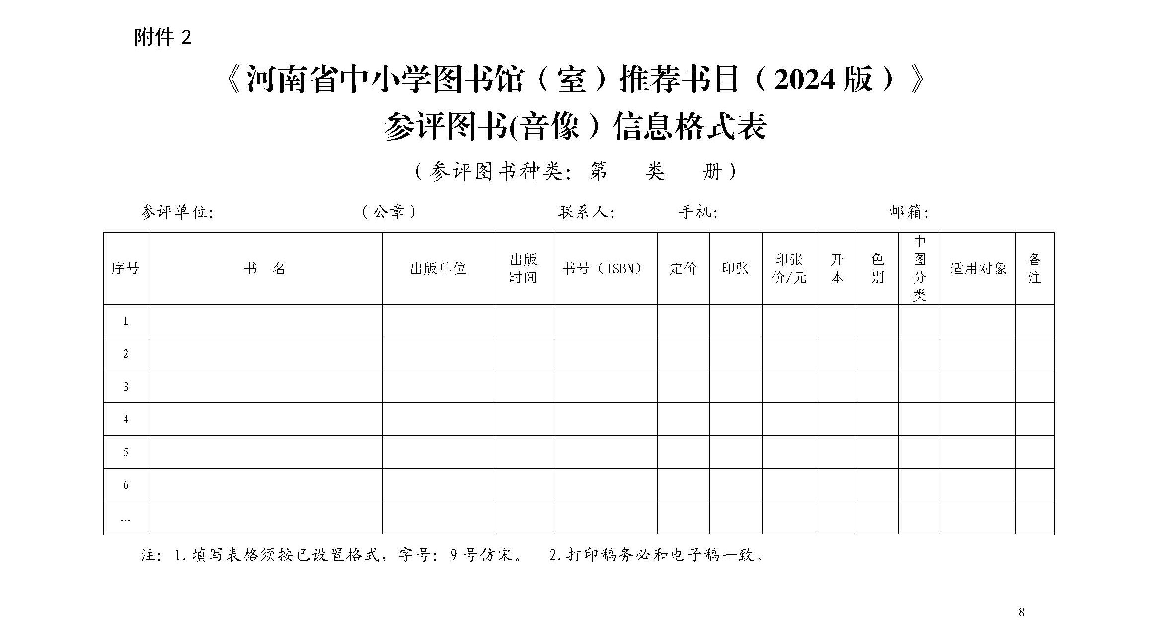 2.《河南省中小學圖書(shu) 館(室)推薦書(shu) 目(2024版)》參評圖書(shu) 信息格式表