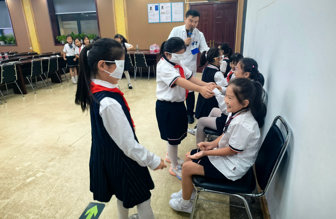為(wei) 鼓勵同學們(men) 時刻關(guan) 注用眼衛生,保護視力,視光部楊主任還通過知識問答、遊戲比賽的方式,寓教於(yu) 樂(le) ,再次普及科學用眼相關(guan) 知識,並對表現積極的學生進行獎勵。為(wei) 了真切感受到眼睛的重要性,孩子們(men) 開展了“蒙眼取物”小遊戲,蒙上小眼睛,小心翼翼地摸索著,真真切切地體(ti) 驗了身處黑暗中的感受,從(cong) 而親(qin) 身體(ti) 會(hui) 到有雙明亮的眼睛是多麽(me) 重要!隨後,同學們(men) 進行了電腦驗光、爭(zheng) 當小小體(ti) 驗官。又來到了視覺訓練室體(ti) 驗活動、參觀了近視手術展示區,探索視覺的神奇。
