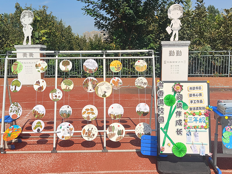 校園裏到處洋溢著歡聲笑語,彌漫著書(shu) 籍的芬芳。操場上靜態展區,各年級的展品無不訴說著孩子們(men) 讀書(shu) 的欣喜快樂(le) ,無不彰顯著閱讀的累累碩果。