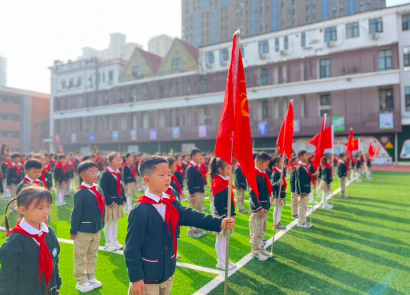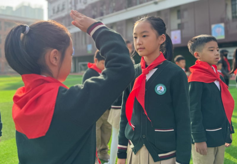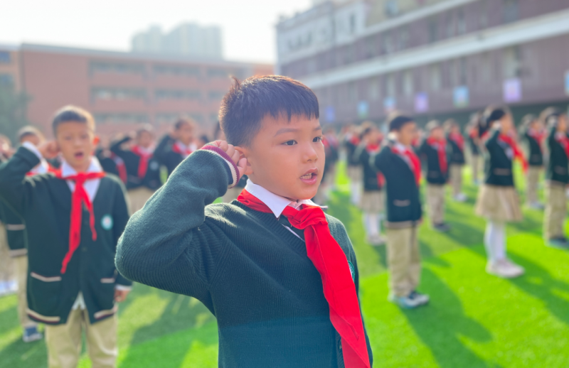 在火紅的隊旗下,在星星火炬的指引中,全體(ti) 隊員在音樂(le) 教師宋曉潔的指揮下高唱隊歌,“我們(men) 是共產(chan) 主義(yi) 接班人,繼承革命先輩的光榮傳(chuan) 統……”響亮的歌聲表達了隊員們(men) 對少先隊組織無限的向往、熱愛與(yu) 奮發向上的信念和決(jue) 心。