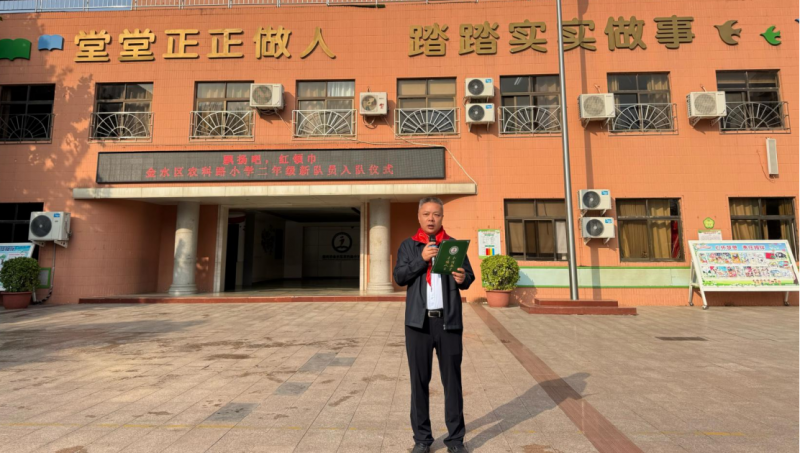 在這個(ge) 幸福的時刻,金水區農(nong) 科路小學黨(dang) 委書(shu) 記、校長、少工委主任孫永亮帶來了他的期望和祝福,他給少先隊員們(men) 提出三點希望,希望他們(men) 紅心向黨(dang) ,誌向高遠,樹立聽黨(dang) 話,跟黨(dang) 走的理想信念;堅持佩戴紅領巾,愛黨(dang) 愛隊;紅心實幹,重在行動,從(cong) 一點一滴做起,讓自己更優(you) 秀,努力做祖國和人民需要的好孩子,做合格的社會(hui) 主義(yi) 接班人!
