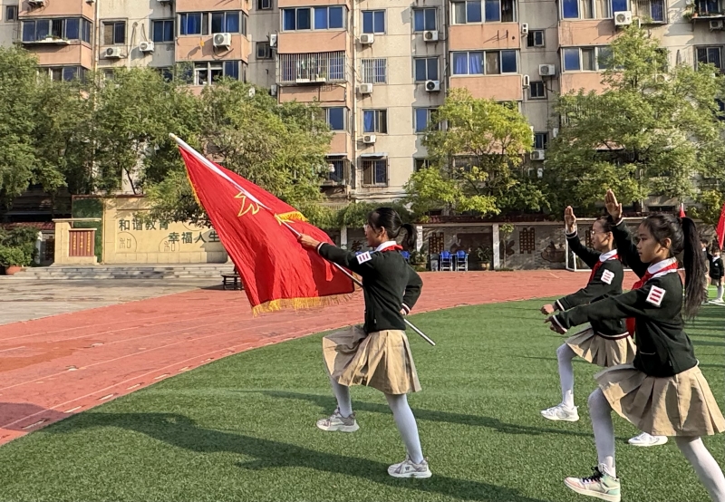 隨著激昂的出旗曲響起,護旗手們(men) 踏著堅定的步伐,手持鮮豔的隊旗步入會(hui) 場。隊旗在風中飄揚,仿佛在低語著少先隊的曆史與(yu) 榮耀,引領著新隊員們(men) 邁向一個(ge) 全新的開始。