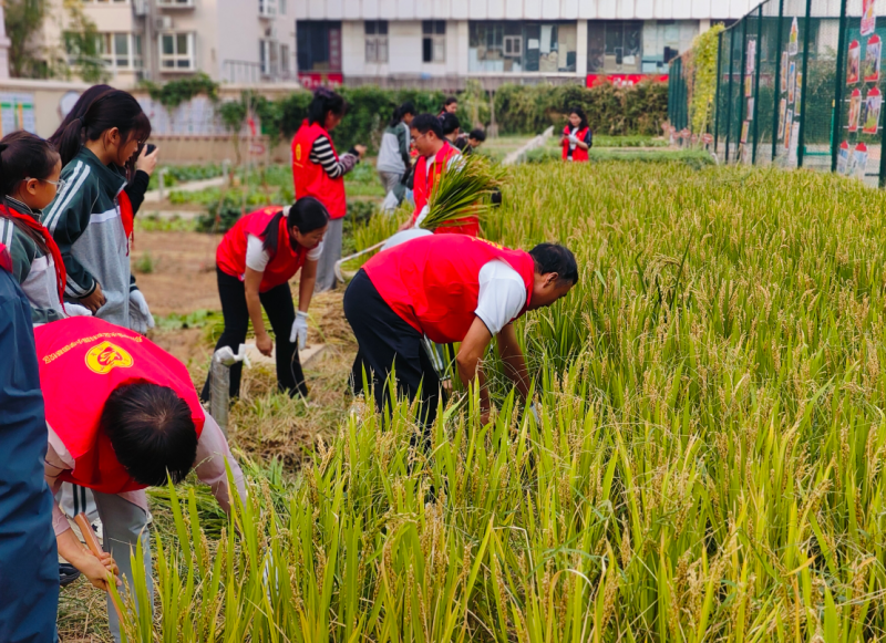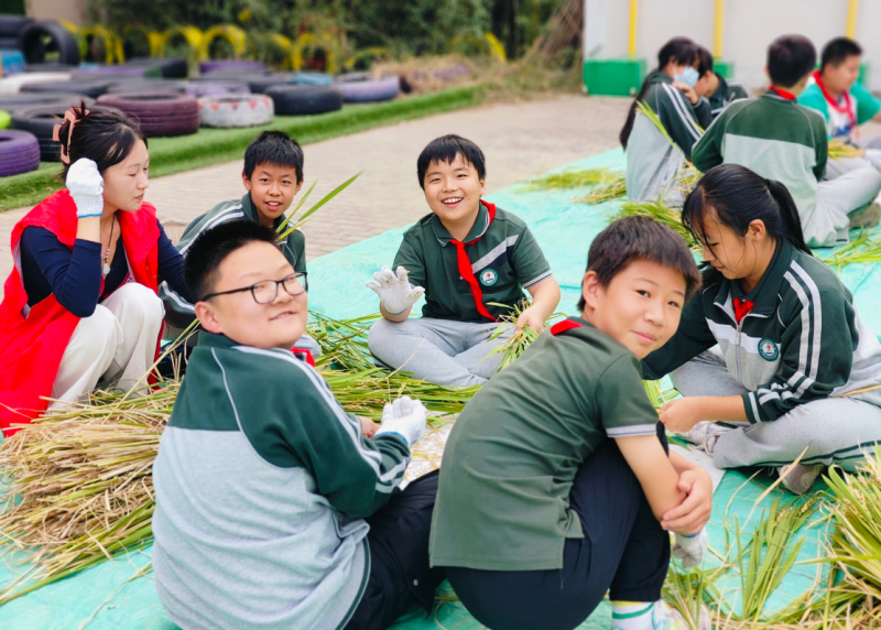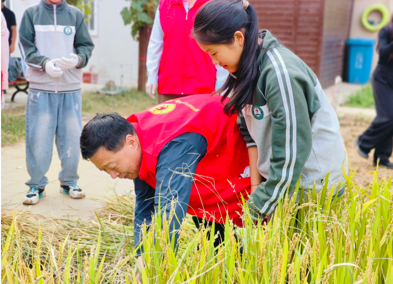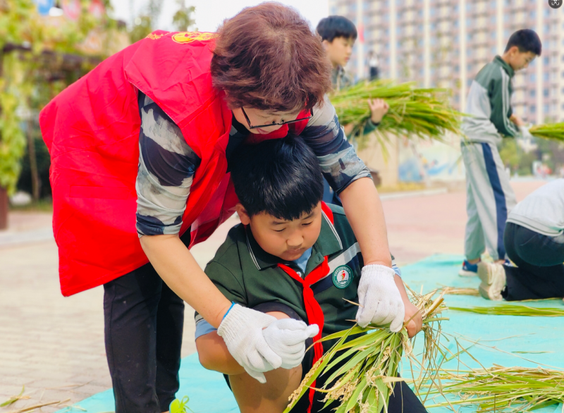 近日,鄭州市金水區農(nong) 科路小學國基校區勞動教育實踐基地“嘉禾園”迎來了水稻大豐(feng) 收。為(wei) 了讓學生親(qin) 近自然,體(ti) 驗農(nong) 耕文化,讓黨(dang) 員教師發揮先鋒模範作用,引領少先隊員積極參與(yu) 勞動實踐,農(nong) 科路小學國基校區組織開展了一場別開生麵的秋收水稻勞動實踐活動。