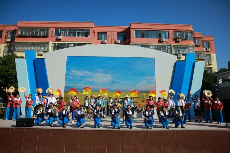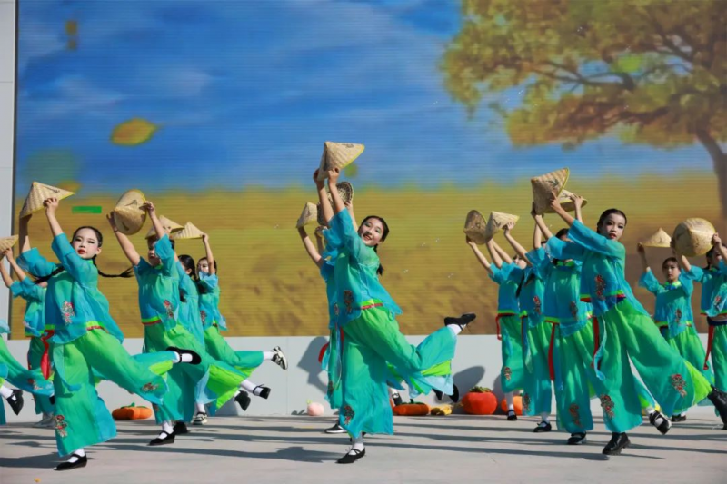 “望稻浪翻滾,映照勤勞的身影;聽笑語連連,奏響豐(feng) 收的樂(le) 章”。在激情澎湃的開場鑼鼓聲中,由該校師生自編自演的慶豐(feng) 收文藝演出拉開了帷幕。文藝演出共分為(wei) “喜迎豐(feng) 登、耕耘頌歌、豐(feng) 收讚歌、分享歡娛、展望未來”五個(ge) 部分。孩子們(men) 身穿白紗裙,手持稻穗表演的歌舞《禾下乘涼夢》讓人們(men) 淚目又驕傲。《豐(feng) 收的樂(le) 章》《五穀豐(feng) 登》《中國永遠收獲著希望》等節目用歌聲、舞蹈與(yu) 歡笑共同編織出了一幅幅豐(feng) 收的畫卷,讓人們(men) 感受到了來自田野的喜悅與(yu) 滿足。