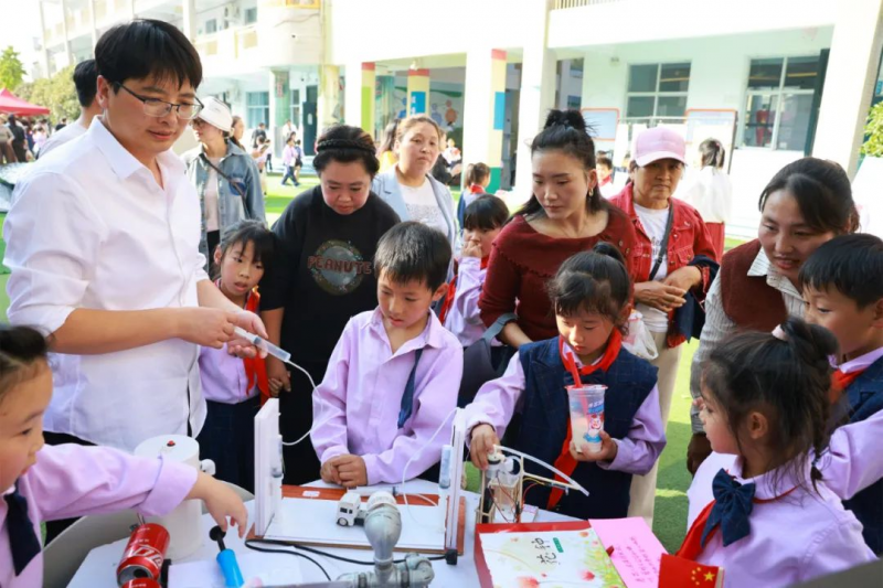 在豐(feng) 收科技作品展區前,各項蘊含科技原理的小發明充分展現了該校小學生熱愛科學、勤於(yu) 動手的最新成果。