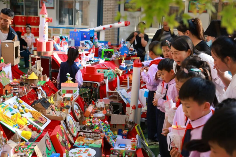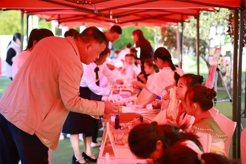 在真市集體(ti) 驗展區,傳(chuan) 統手工作品、製作、體(ti) 驗、售賣等在如火如荼地進行著,大家共同欣賞孩子們(men) 製作的紮染作品、葫蘆畫、剪紙、絨花作品,不時豎起大拇指給以點評和肯定。