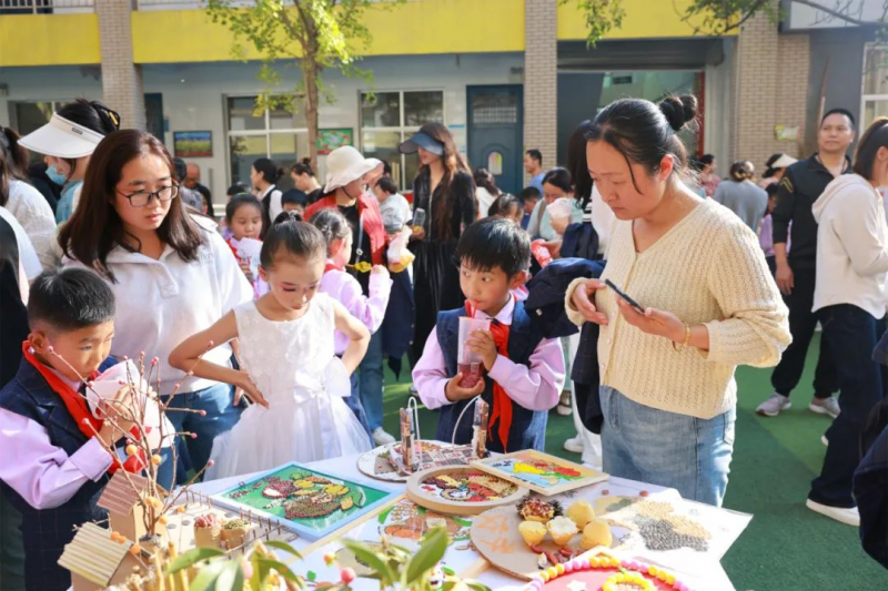 在“創意話豐(feng) 收”展示區,造型各異的豐(feng) 收景象,藏在“中國地圖”裏,藏在籮筐、笸籮裏,更藏在孩子們(men) 有趣的情景表演裏。三(2)班的韓思彤家長說:“看到孩子們(men) 一張張自信展示的笑臉,看到整個(ge) 現場的布置、組織,我感覺三小的勞動教育真是越辦越好了!”