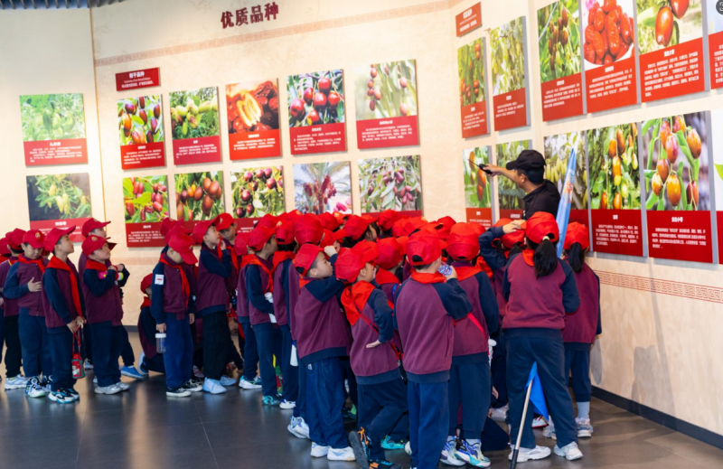 “棗立方”紅棗博物館是世界第一、中國唯一的紅棗博物館,承載了8000多年的紅棗文化及黃帝文化。孩子們(men) 跟隨教官熟悉各個(ge) 區域,在展館內(nei) 沉浸式體(ti) 驗紅棗文化,了解紅棗的前世今生。通過教官的介紹,孩子們(men) 還了解到紅棗的種類居然有706種,而且棗可以做超級多的美食,食用紅棗還可以補血、美容養(yang) 顏。