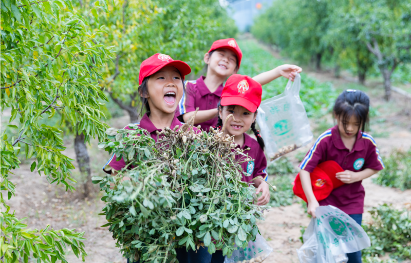 午飯後,孩子們(men) 精力充沛,在教官的指令下,一個(ge) 個(ge) 雄赳赳、氣昂昂地衝(chong) 向花生地。老師和教官教同學們(men) 如何拔花生。原來拔花生也是一門技術活,要用巧勁把果實從(cong) 地裏連根拔起,將花生植株上的泥土抖幹淨,再從(cong) 根上一顆一顆把花生摘下來。通過采摘活動,同學們(men) 不僅(jin) 體(ti) 會(hui) 到了勞動的快樂(le) ,也收獲關(guan) 於(yu) 拔花生的知識。
