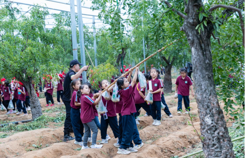 舉(ju) 竿打棗,樂(le) 在收獲。在教官的幫助下,同學們(men) 一起將打落的大棗收集了起來,紅的發亮的大棗落在孩子們(men) 的身上,樂(le) 在孩子們(men) 的心中。伴隨著紅棗一個(ge) 一個(ge) 的掉落,孩子們(men) 的歡聲笑語不斷在空中飄蕩,大家迫不及待地想要把棗帶回家去,與(yu) 父母分享豐(feng) 收的喜悅。