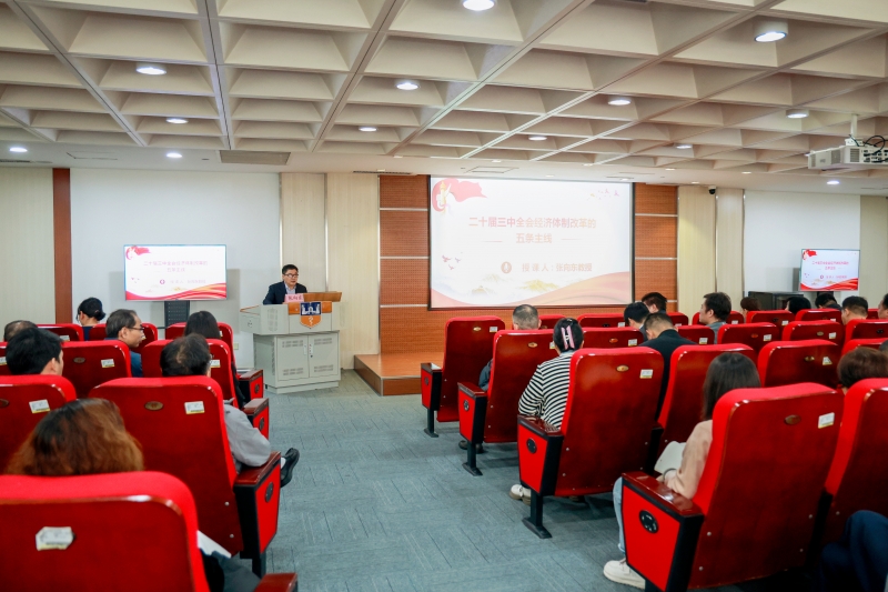 張向東(dong) 以《二十屆三中全會(hui) 經濟體(ti) 製改革的五條主線》為(wei) 主題,從(cong) “深刻領會(hui) 三中全會(hui) 《決(jue) 定》精神實質”“深化經濟體(ti) 製改革的五條主線及相關(guan) 舉(ju) 措”“推進教育、科技、人才'三位一體(ti) '協同融合發展”幾個(ge) 部分進行深入解讀。他指出,經濟體(ti) 製改革對其他方麵改革具有重要影響和傳(chuan) 導作用,重大經濟體(ti) 製改革的進度決(jue) 定著其他方麵很多體(ti) 製改革的進度,具有牽一發而動全身的作用。在經濟體(ti) 製改革的五條主線中,我們(men) 要堅持市場在資源配置中起決(jue) 定性作用這一基本改革取向下,重點通過深化財稅體(ti) 製和民生保障體(ti) 係這兩(liang) 個(ge) 基礎性改革,實現創新驅動和城鄉(xiang) 融合發展這兩(liang) 個(ge) 未來邁向中國式現代化的基本路徑。
