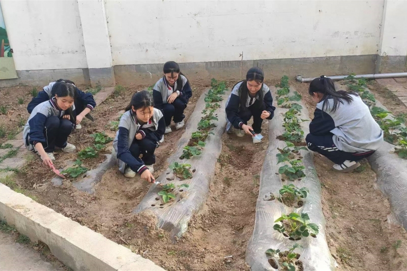 靈寶市朱陽鎮第二初級中學勞動實踐基地裏,孩子們(men) 揮舞鐮刀,掄著鋤頭,正在熱火朝天地清除雜草,平整土地,播種希望,呈現出一派繁忙的秋耕景象。