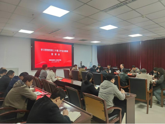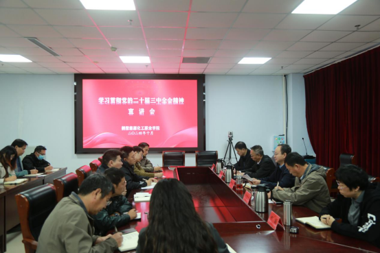 為(wei) 深入學習(xi) 貫徹黨(dang) 的二十屆三中全會(hui) 精神,引導全校師生切實把思想和行動統一到全會(hui) 精神上來,10月21日上午,鶴壁能源化工職業(ye) 學院舉(ju) 辦了學習(xi) 貫徹黨(dang) 的二十屆三中全會(hui) 精神宣講會(hui) 。校黨(dang) 委書(shu) 記楊會(hui) 明作專(zhuan) 題宣講,學校全體(ti) 領導、支部書(shu) 記、中層幹部參加。
